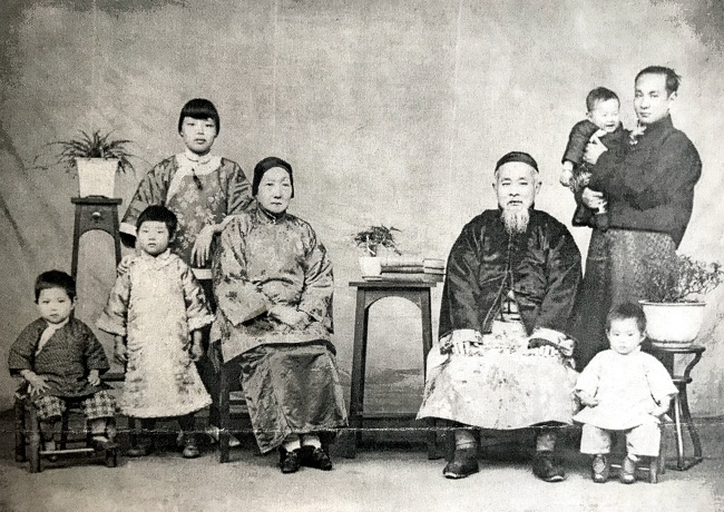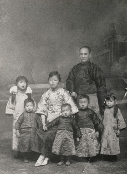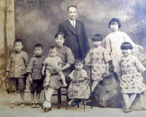 这时(约1925)有了三女二男,全家还是传统服饰,可看出秀莹足踏时髦的高跟鞋。
